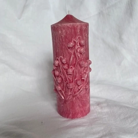 Svíčka z krystalického palmového vosku. Každá svíčka je originál, díky vlastnostem vosku vytváří vzhled svíćky neopakovatelné kombinace krystalické struktury. Svíčky se tak od sebe liší jemný i odstíny a vrhají pokaždé jiný odlesk. celý popis